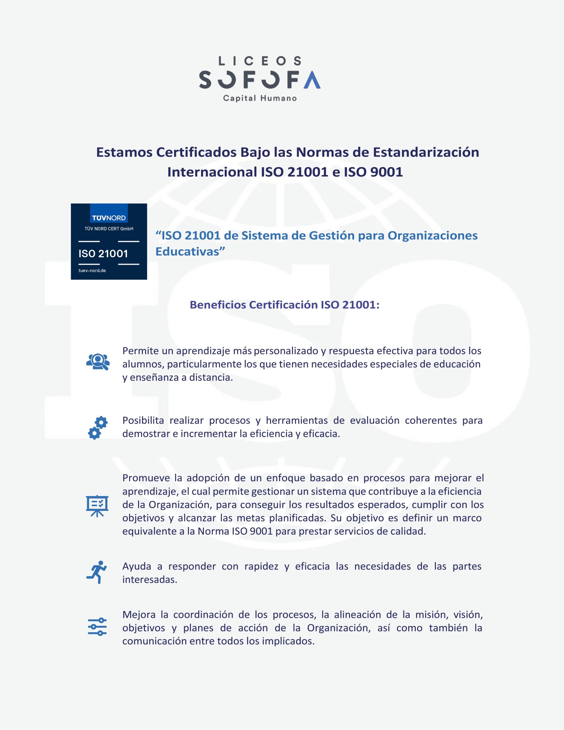 • Certificación ISO 9001-21001